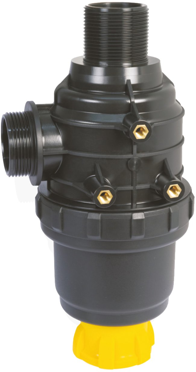 Passage filtrant 100 à 160L/min avec soupape de fermeture pour le nettoyage.