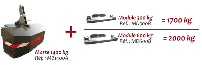 • LESTAGRI MASSE EVOLUTIVE 1 400 Kg (acier) / possibilité d'évoluer à 2 000 kg grâce au module 600 kg