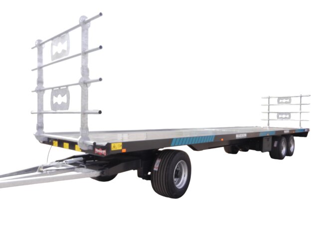 • Plateau trainé 6 roues 12 mètres. Disponible avec freinage hydraulique double ligne 25 km/h, ou freinage pneumatique double ligne 40 km/h.