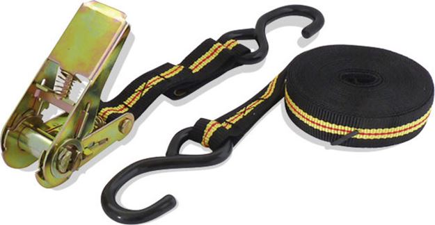 Sangle en 2 parties (cliquet séparé). 25 mm - 5 m- 125 kg. Avec cliquet de tension.